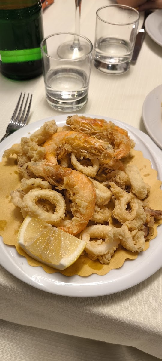 Pleasant stay for dinner in an upscale restaurant. We were here with two people on a Monday at the end of September at around 8 p.m. The restaurant was almost empty and we could choose a seat The restaurant is elegant and brightly decorated and everything is very neat and clean. We had the fried baby octopus as a starter (one portion for 2 people), 2 fritto misto as a main course and a portion of tiramisu for dessert. The food was served quickly and everything was very tasty. The service was polite and quick. It was a good experience eating here. Together with 1/2l of wine and a bottle of water we paid 65€